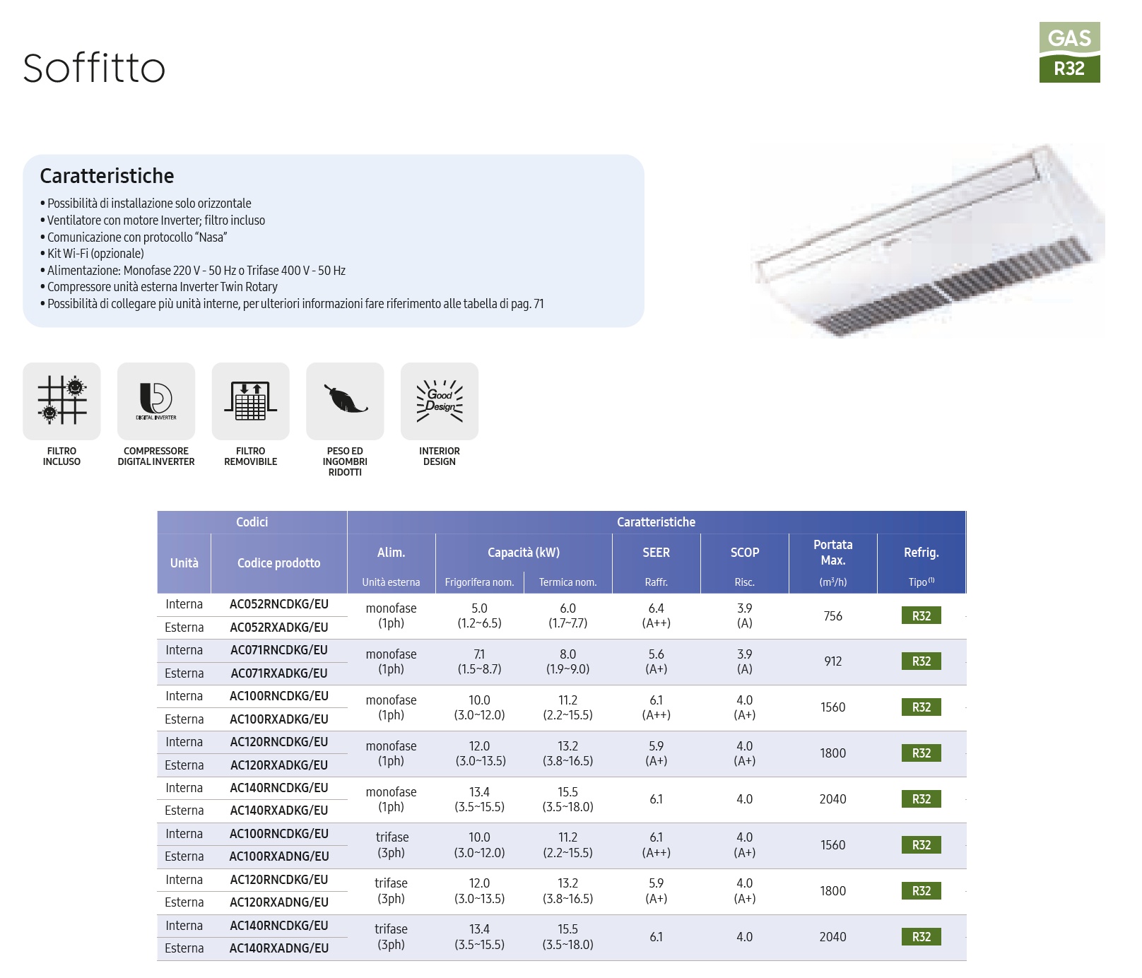 - Nur horizontale Installation möglich- Lüfter mit Invertermotor; Filter enthalten