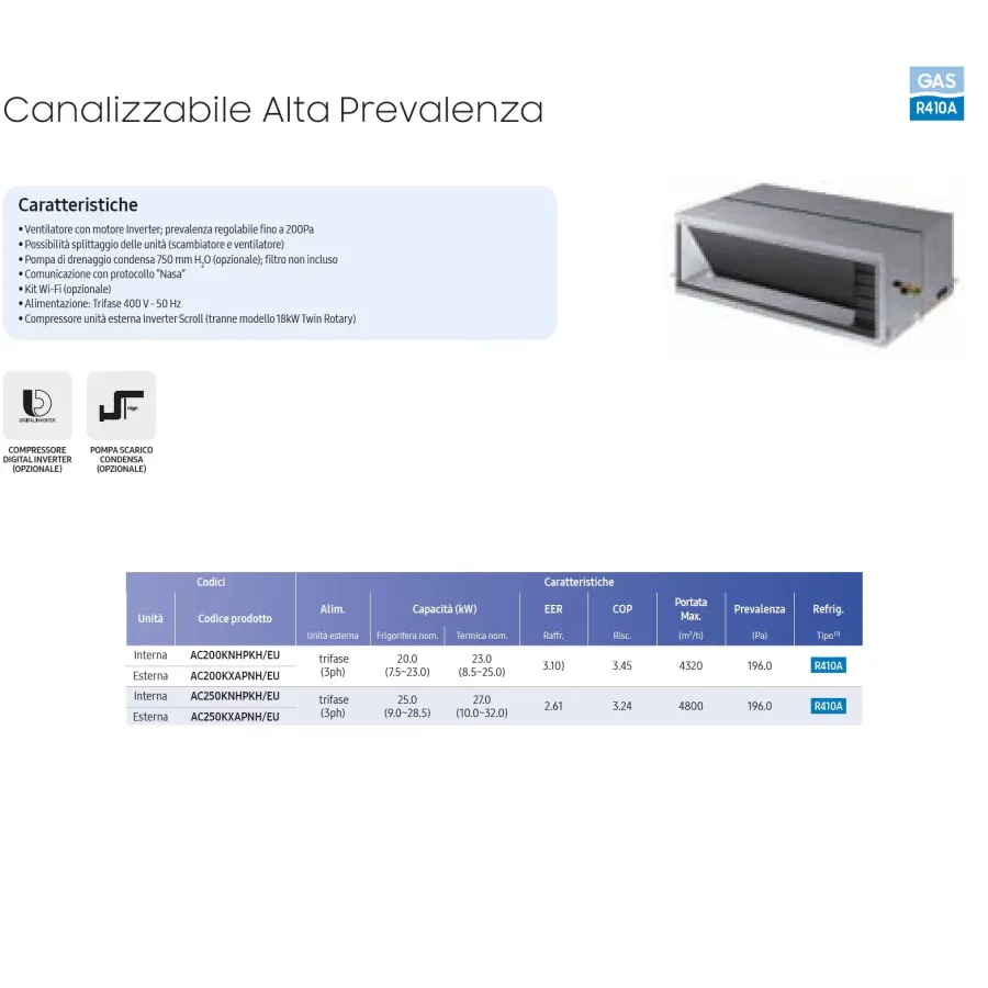 Interne Kanaleinheit AC200KNHPKH/EU 68.000 BTU 20.0 kW