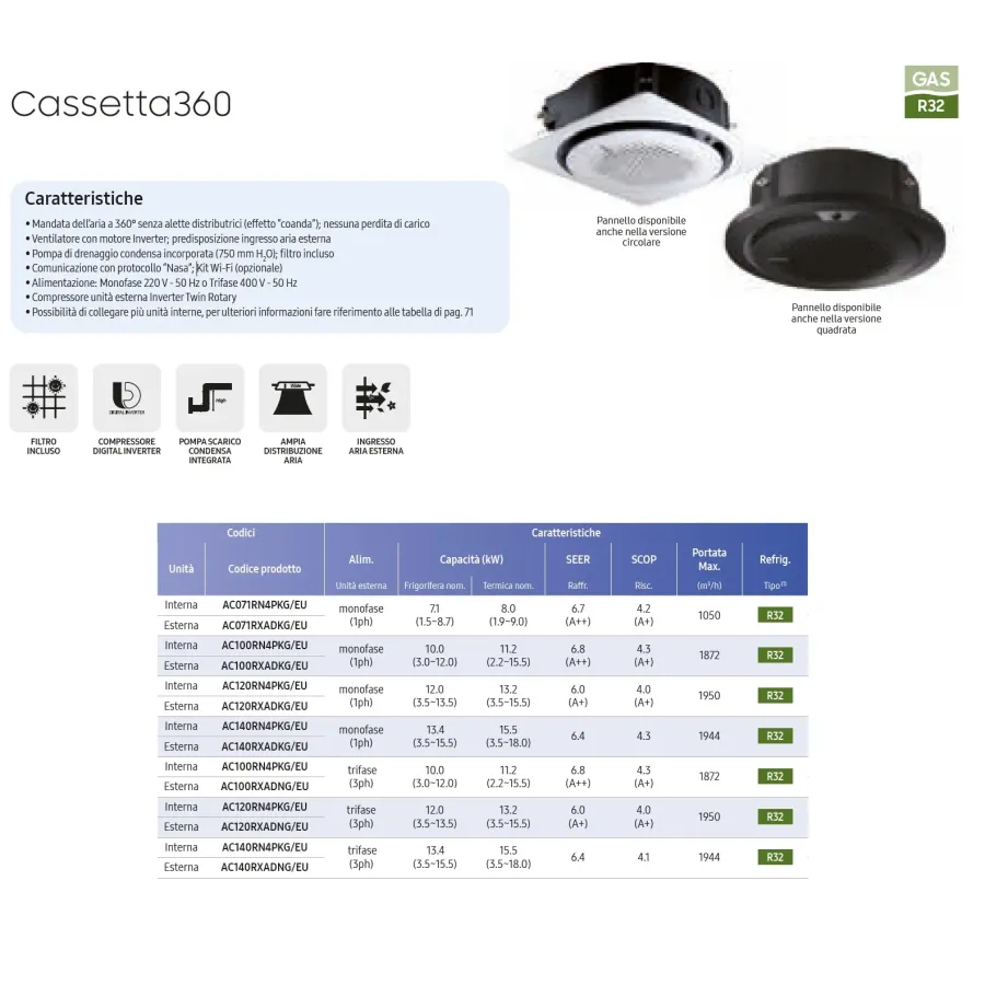 Kassetten-Inneneinheit 360 AC120RN4PKG/EU 40.700 BTU 12.0 kW