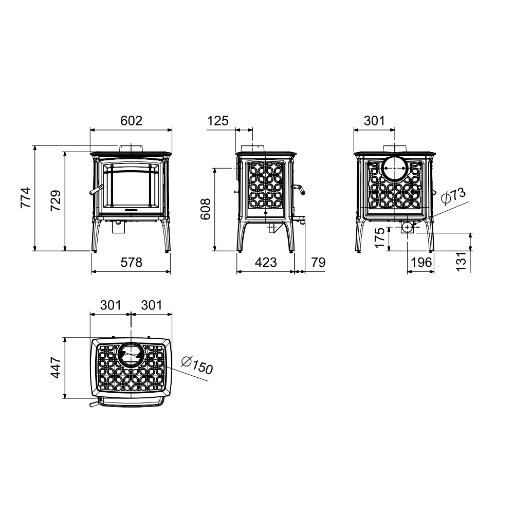 - Rauchrohrdurchmesser: 150 mm