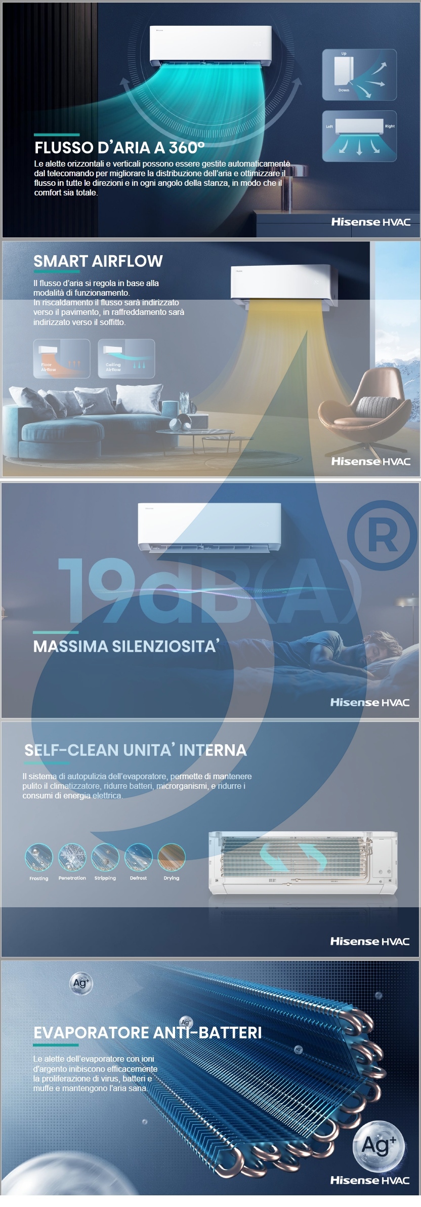 - Die patentierte Reinigungstechnologie von Hisense sorgt für maximale Leistung der Innen- und Außeneinheit. Der Selbstreinigungsprozess durch Einfrieren, Auftauen und Trocknen bei hohen Temperaturen entfernt Staub, Entfernen Sie Bakterien einfach und effektiv aus den Geräten, um die Klimaanlage sauber und sicher zu halten. Die Self-Clean-Funktion wird per Fernbedienung aktiviert und ist bei allen wandmontierten Innengeräten und Single-Split-Außengeräten verfügbar.