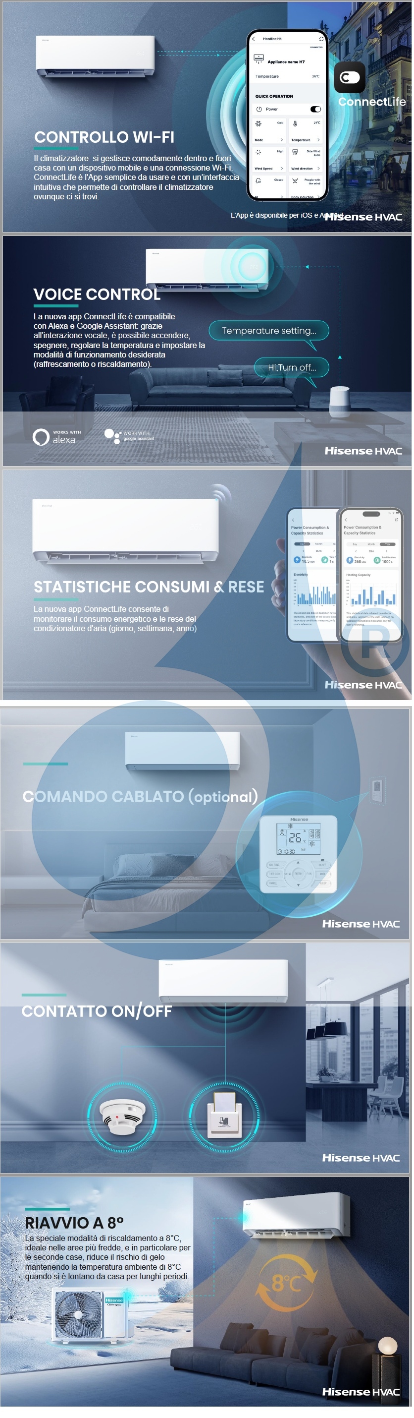 - Hisense-Klimaanlagen können bequem innerhalb und außerhalb des Hauses mit einem mobilen Gerät und einer WLAN-Verbindung verwaltet werden. ConnectLife ist die einfach zu bedienende App mit einer intuitiven Benutzeroberfläche, mit der Sie die Klimaanlage überall steuern können. Die App ist für iOS und Android verfügbar.