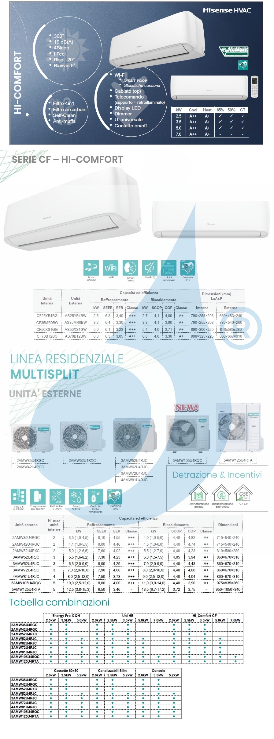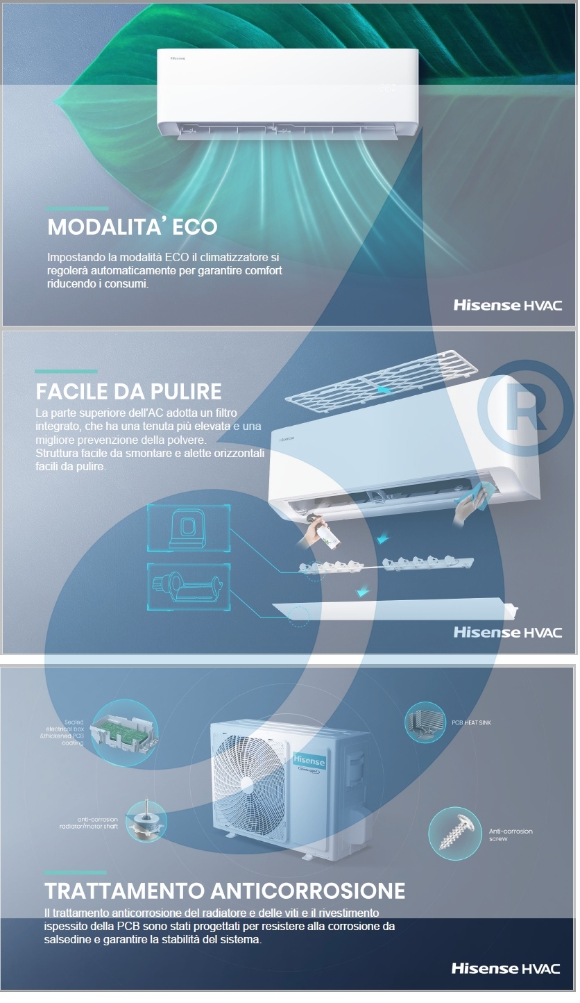 Klimageräte Hisense Inneneinheit Serie Hi Comfort WiFi 9000 Btu kombinierbar mit externem Motor für Heizfunktionen mit hocheffizienter Wärmepumpe mit energieeffizienter Nutzung, Luftklappe