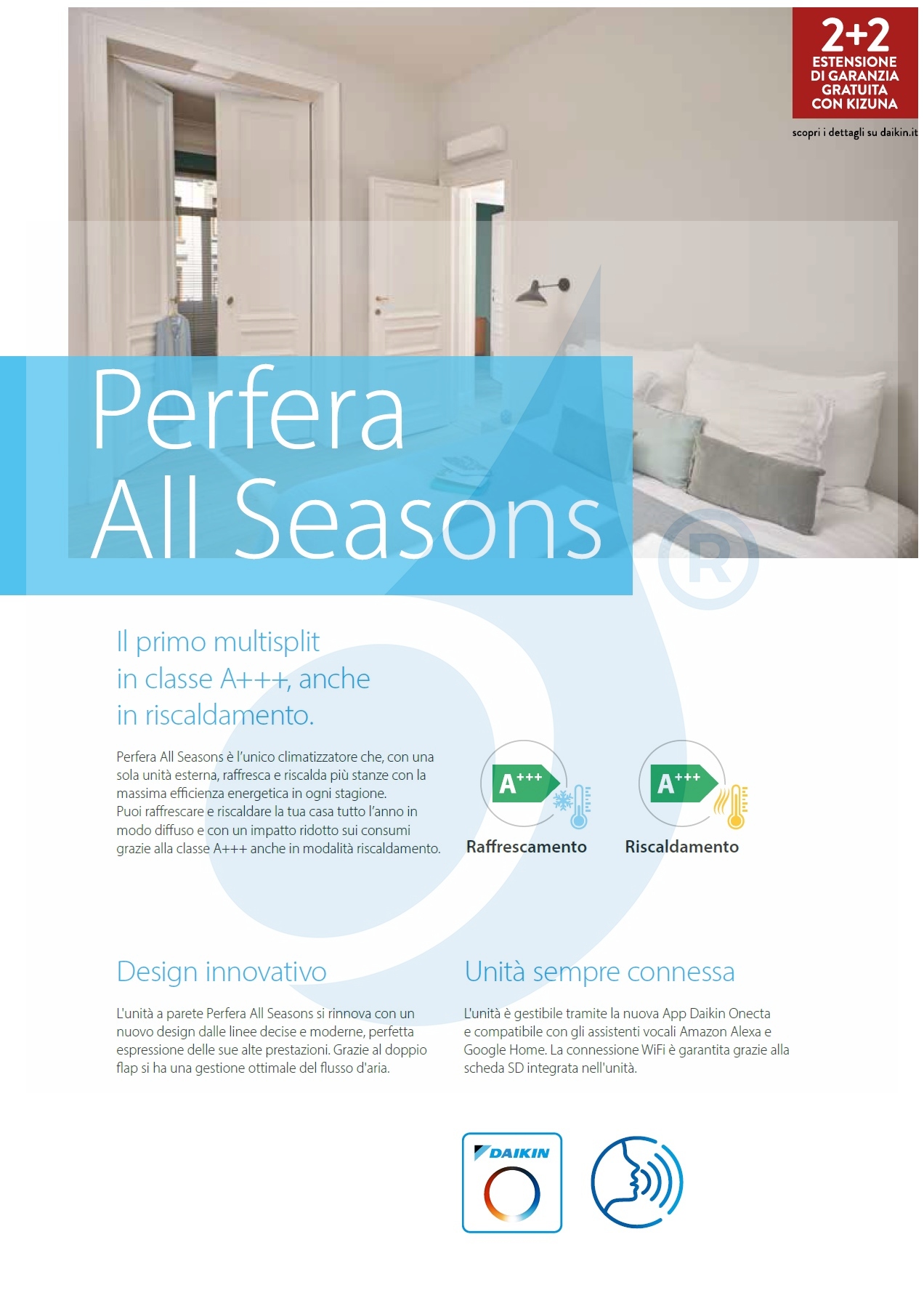 Eine einzigartige Klimaanlage, geeignet für alle Jahreszeiten. Perfera All Seasons ist die einzige Klimaanlage, die mit einer einzigen Außeneinheit mehrere Räume zu jeder Jahreszeit mit maximaler Energieeffizienz kühlt und heizt.