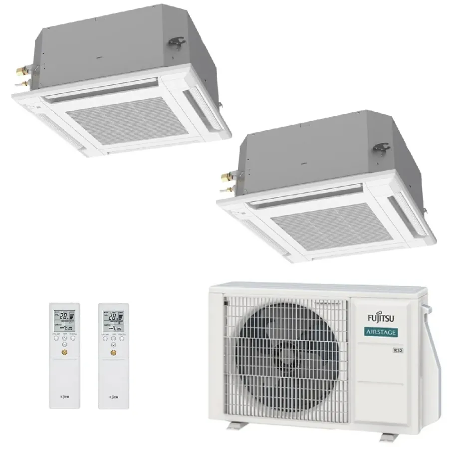 Fujitsu Duo Split 9000+9000 Btu Kassettengerät AOEG14KBCA2 AUXG09KVLA AUXG09KVLA Klimaanlage Serie Kompakt-KV R-32