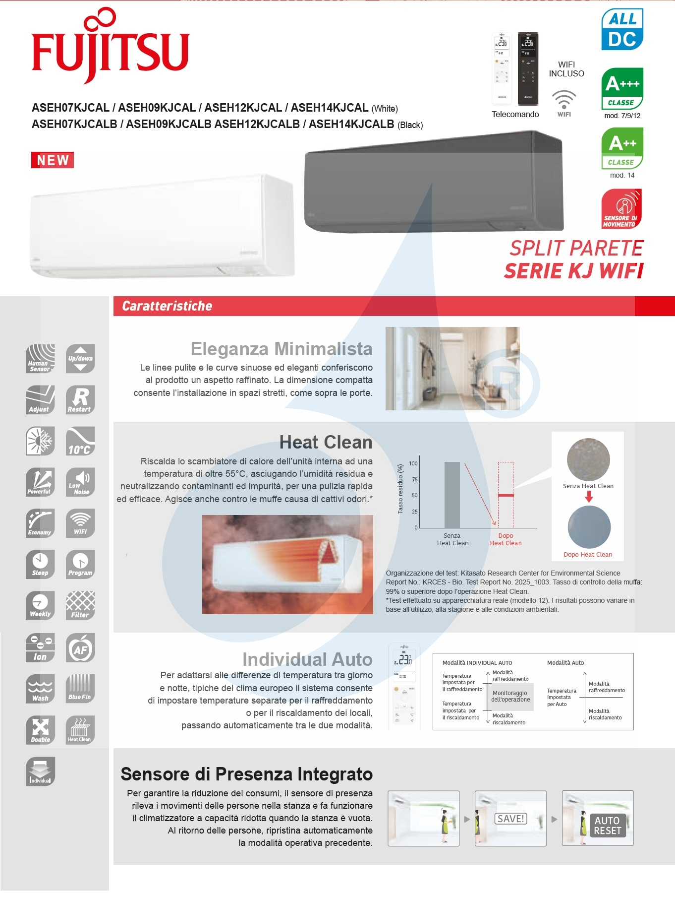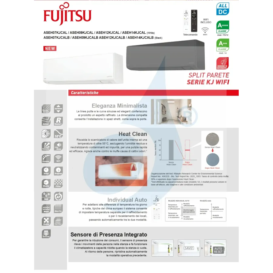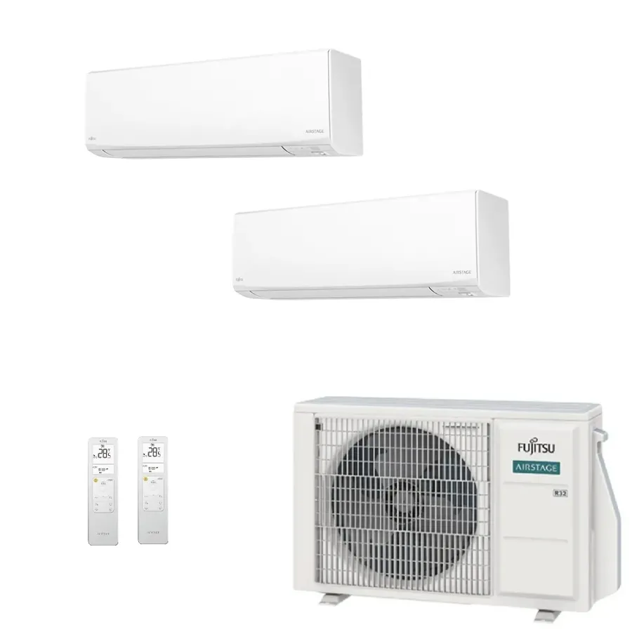 Klimaanlagen Fujitsu Duo Split Serie KJ-W WiFi 9000+12000 Btu Heizung mit Wärmepumpe mit Niedrigenergieverbrauch Invertertechnologie