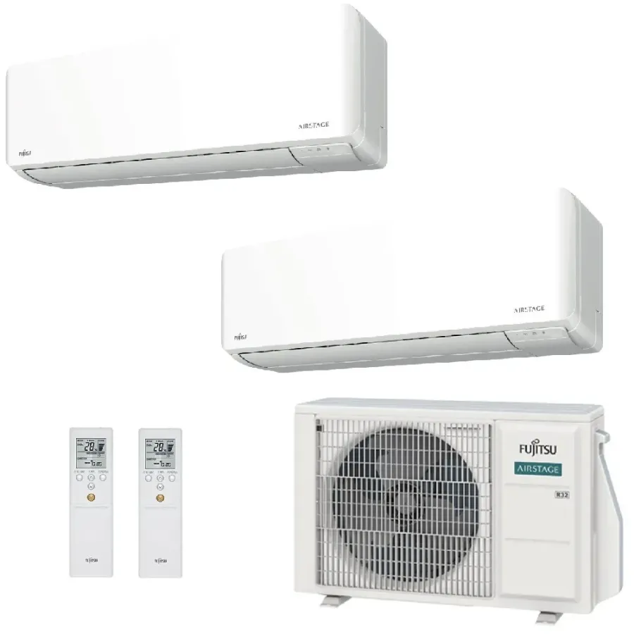 Fujitsu Duo Split 7000+12000 Btu AOEG14KBCA2 ASEH07KMCG ASEH12KMCG Klimaanlage Weiß KMCG WiFi R-32 A+++ A++