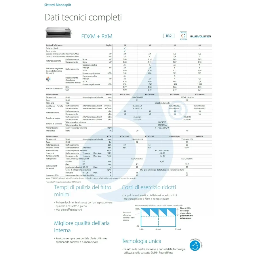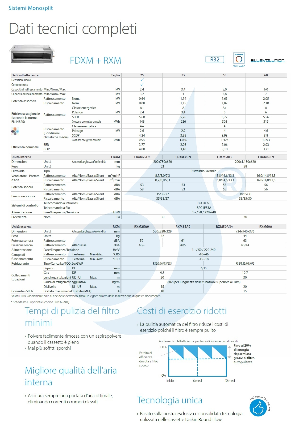 Klimaanlage Daikin Mono Split serie FDXM-F9 WiFi Optional 12000 Btu Heizung mit Schwachstrom-Absorptionswärmepumpe in hoher Energieklasse Kompaktes Unterputzgerät mit einer Höhe von nur 200 mm