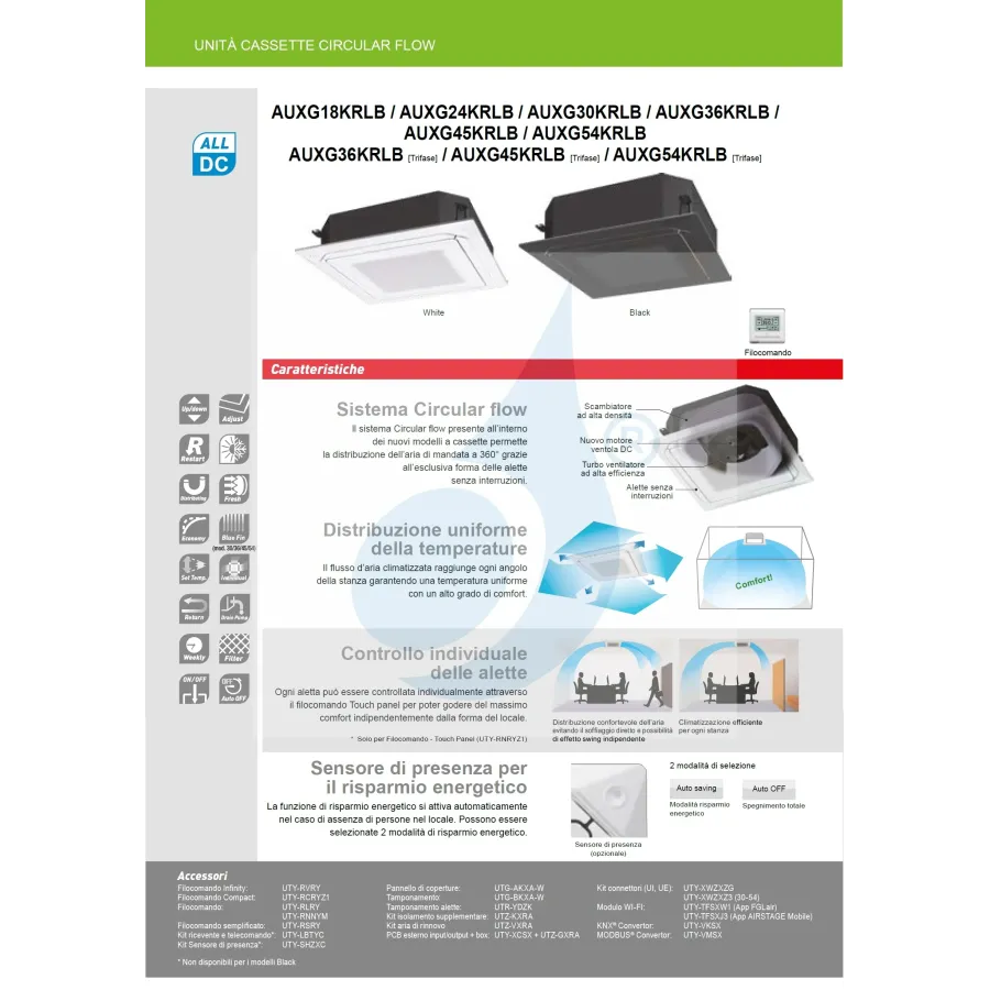 Fujitsu Mono Split Kassettengerät 54000 Btu AUXG54KRLB AOEG54KBTB Klimaanlage Serie KR Circular Flow Weiß R-32 Einphasig 220v