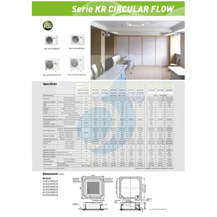 Fujitsu Mono Split Kassettengerät 54000 Btu AUXG54KRLB AOEG54KRTA Klimaanlage Serie KR Circular Flow Weiß R-32 Dreiphasig 380v