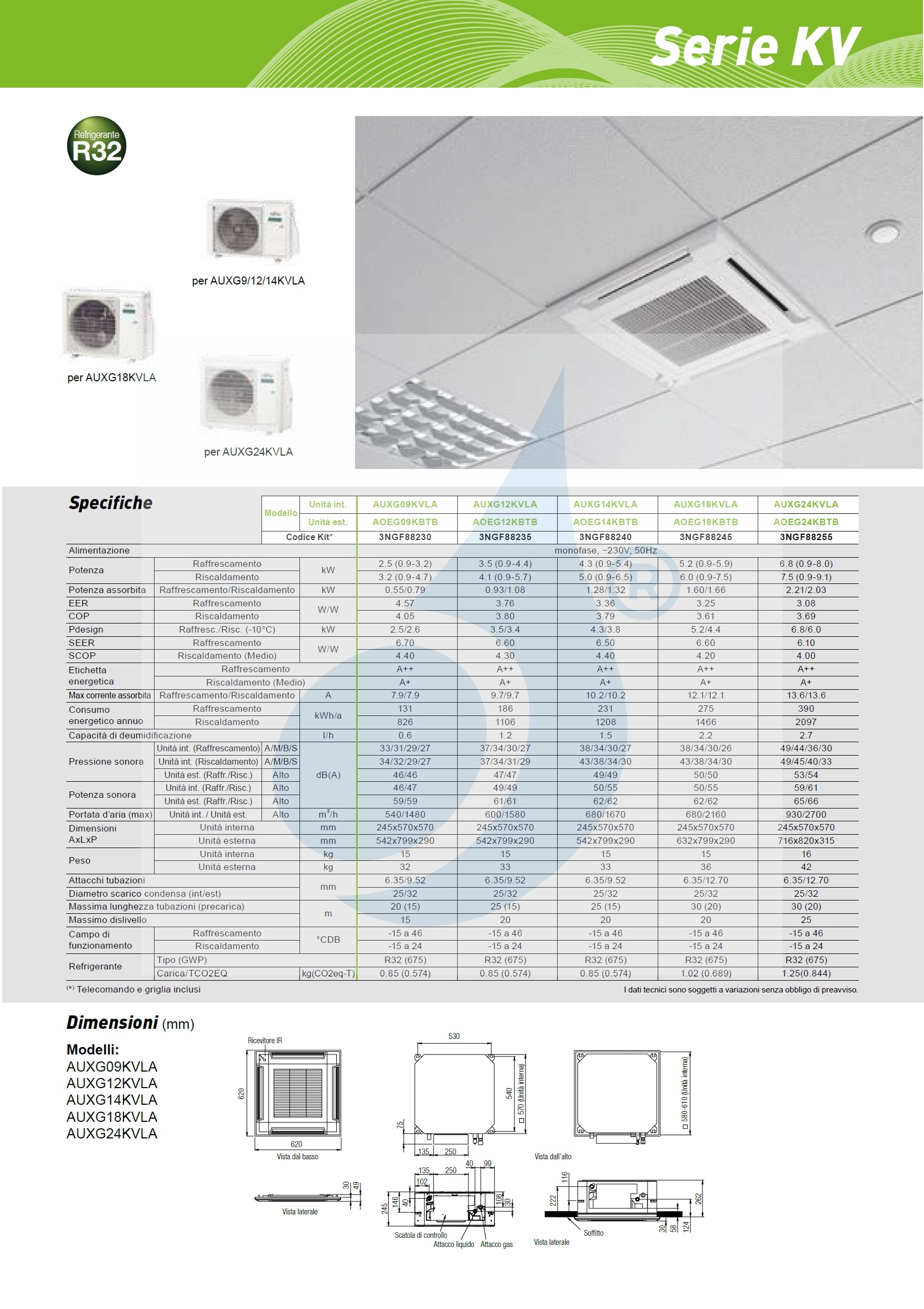 Interne Kassetteneinheit AUXG09KVLA 9.000 BTU 2.6 kW Kompakte KV-Serie