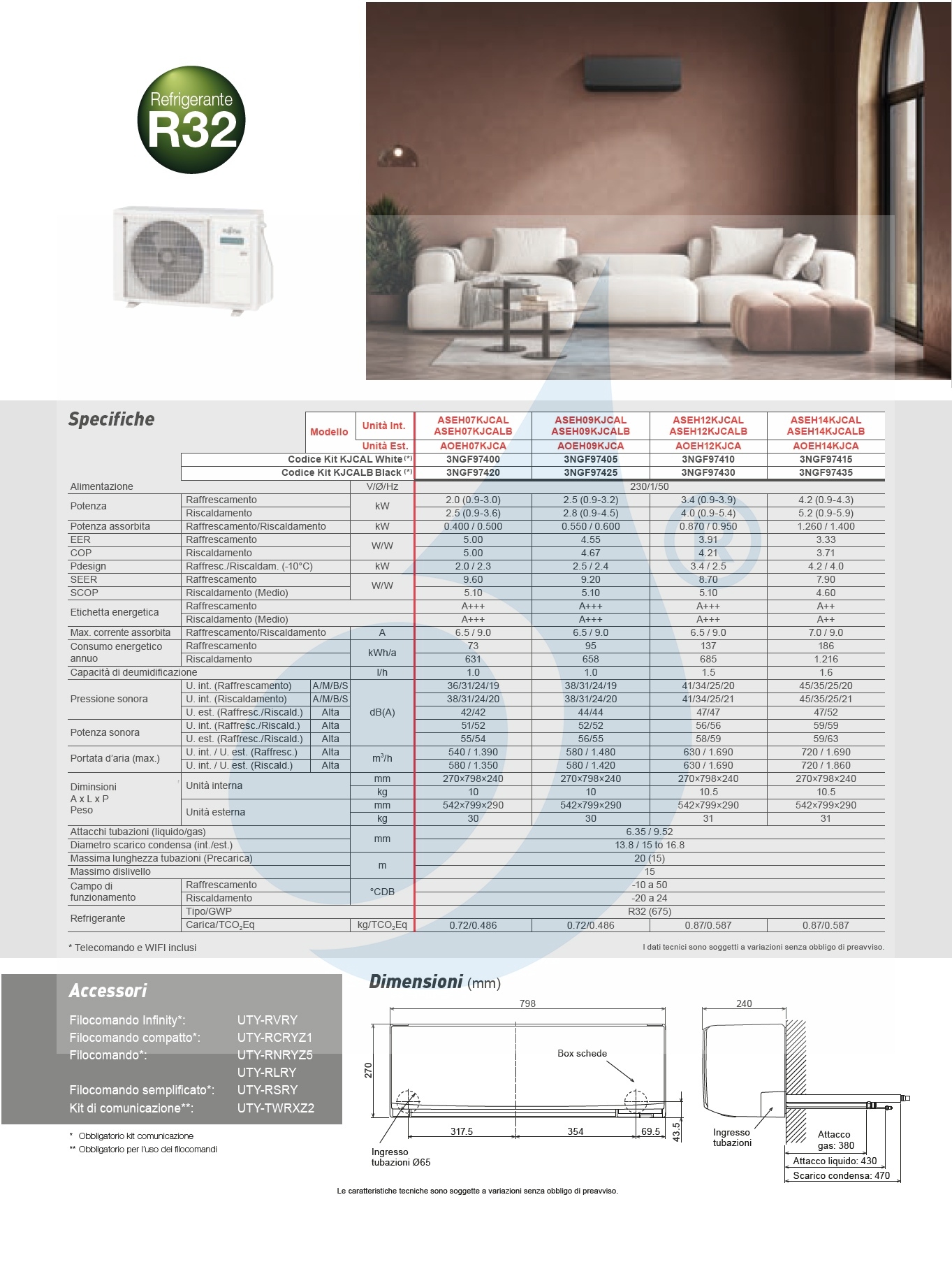 Klimaanlagen Fujitsu Mono Split Serie KJ-W WiFi 12000 Btu Heizung mit Wärmepumpe mit Niedrigenergieverbrauch Invertertechnologie