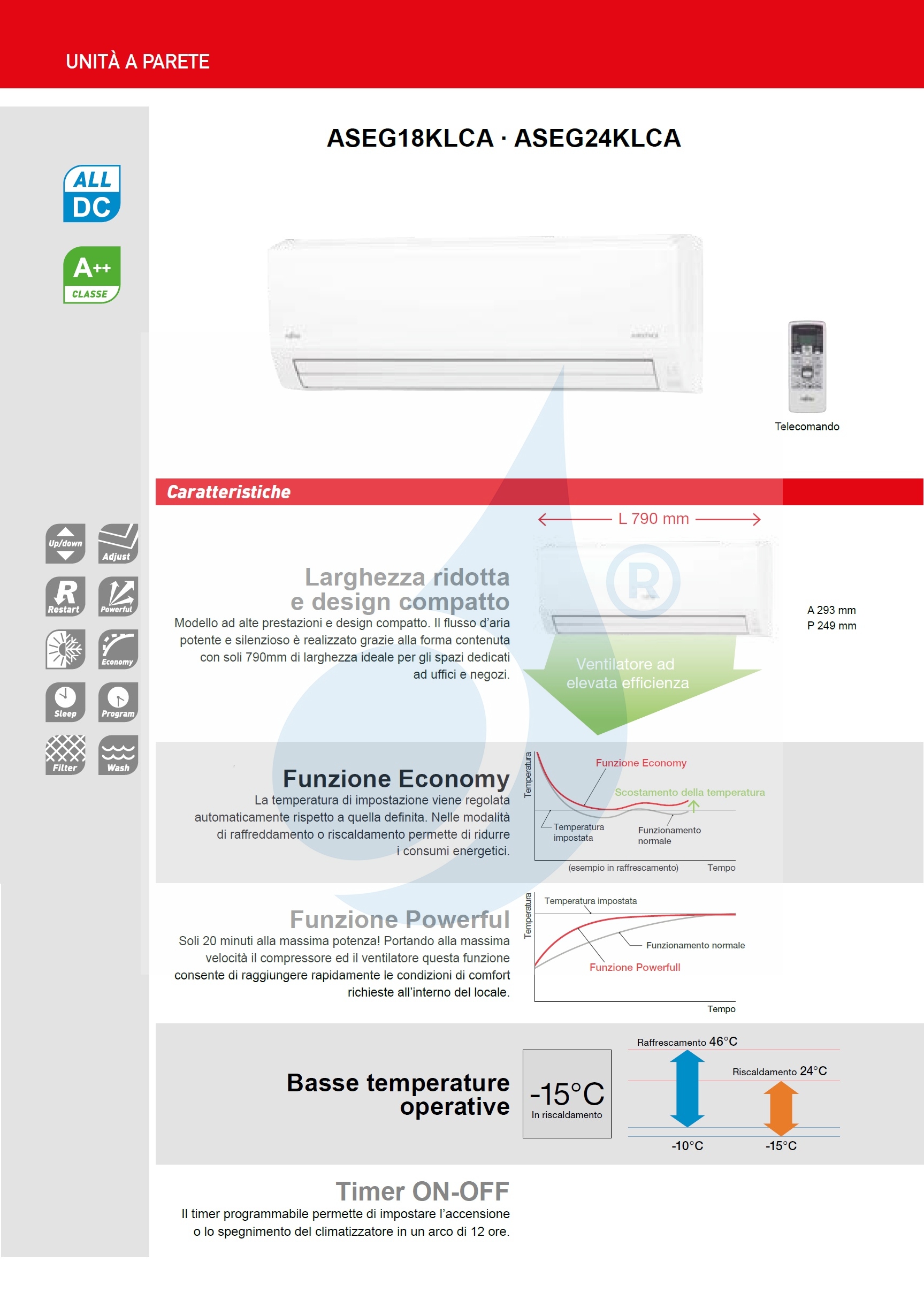 Leistungsstarkes Modell mit kompaktem Design. Der kraftvolle und leise Luftstrom wird durch die kompakte Form mit nur 790 mm Breite erreicht ideal für Büro- und Ladenräume.