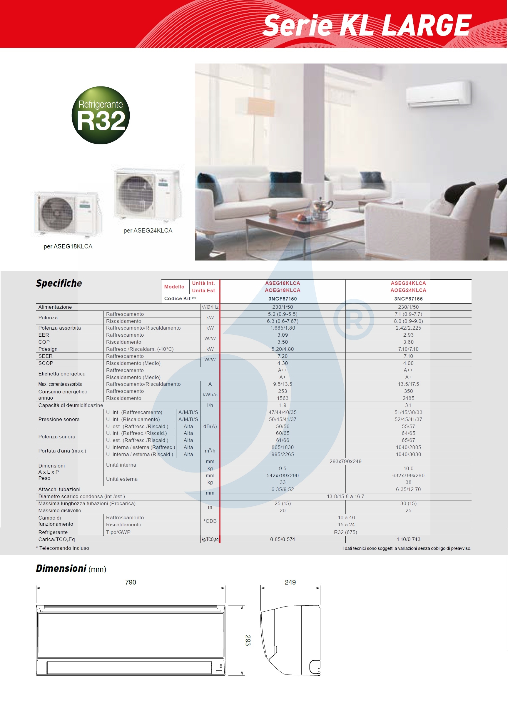 Klimaanlagen Fujitsu Mono Split Serie KL 18-24 WiFi Optional 18000 Btu Heizung mit Wärmepumpe mit Niedrigenergieverbrauch Invertertechnologie