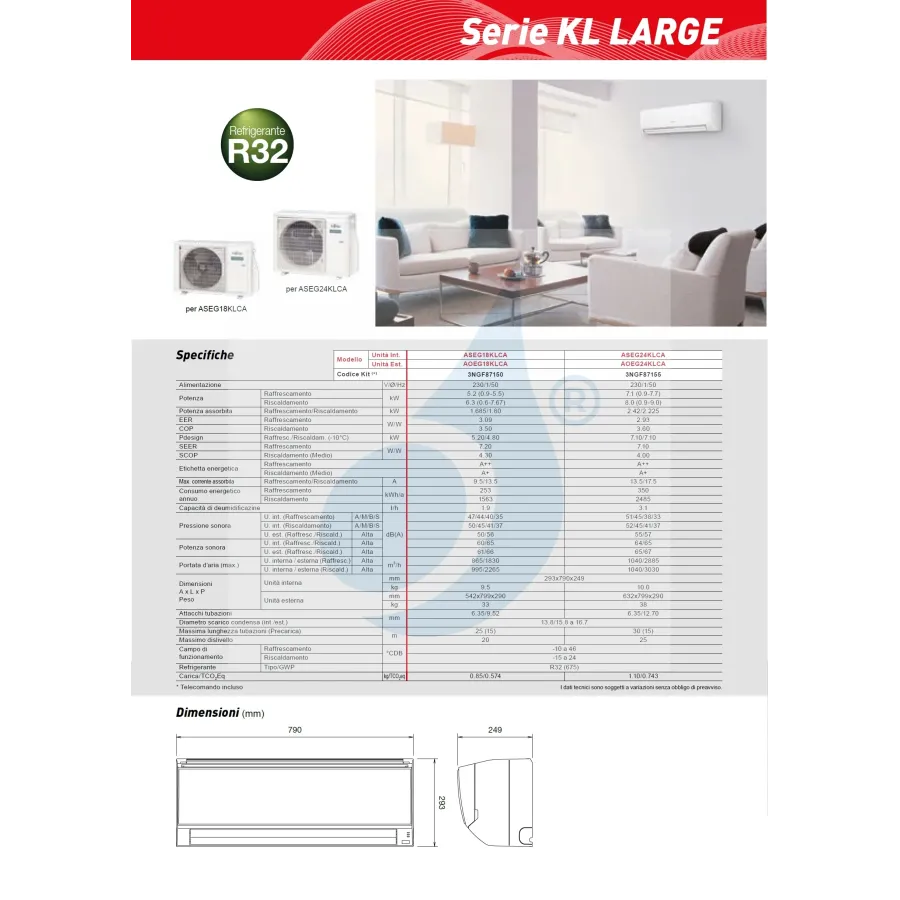 Innenwandeinheit ASEG24KLCA 24.000 BTU 8.0 kW Serie KL
