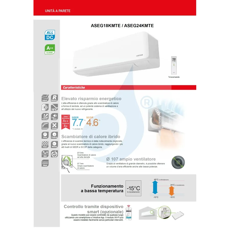 Fujitsu Mono Split 18000 Btu ASEG18KMTE AOEG18KMTA Klimaanlage Weiß KM LARGE WiFi Optional A++ A+ R-32