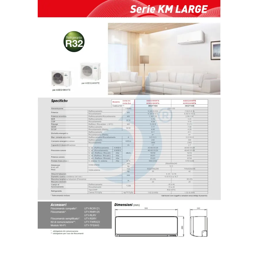 Klimaanlagen Fujitsu Mono Split Serie KM LARGE WiFi Optional 24000 Btu Heizung mit Wärmepumpe mit Niedrigenergieverbrauch Invertertechnologie
