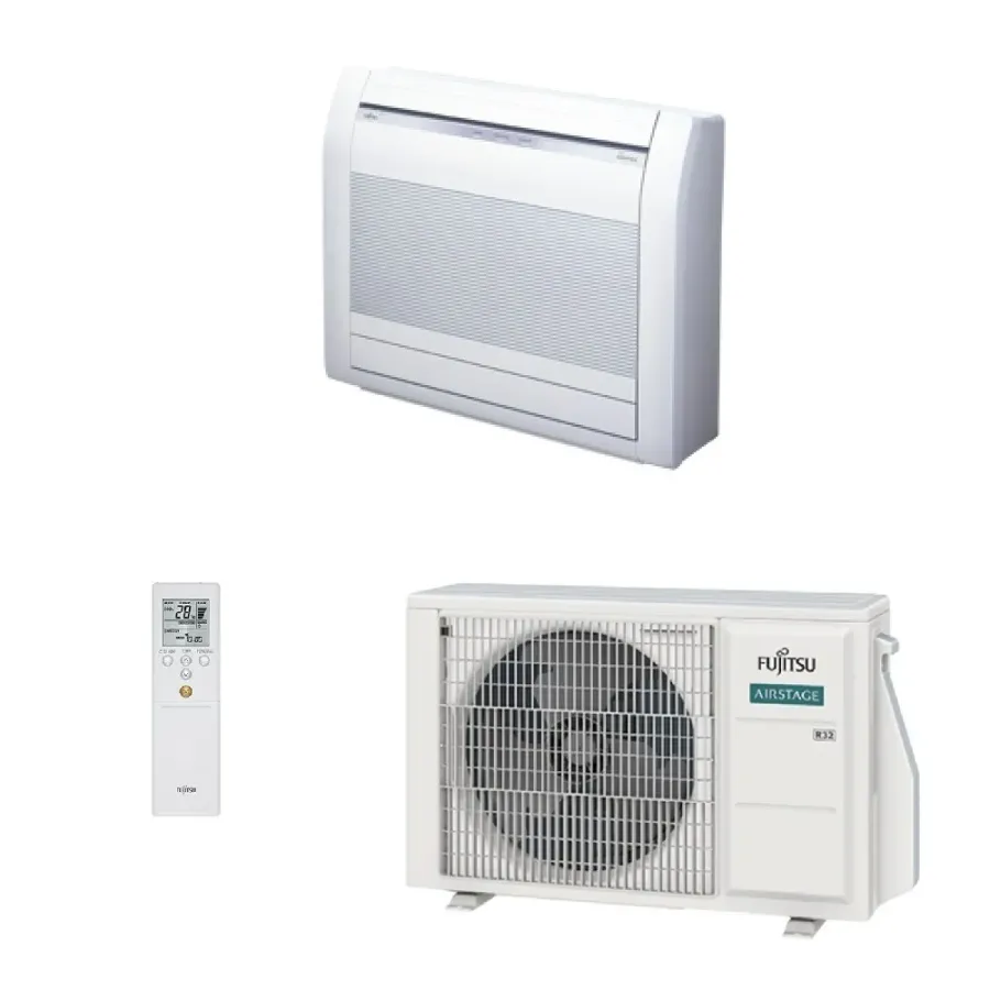 Klimaanlagen Fujitsu Mono Split Serie Fußboden KV WiFi Optional 9000 Btu Heizung mit Wärmepumpe mit Niedrigenergieverbrauch Invertertechnologie ideal für Dachböden oder Installationen unter Fenstern, optimal zum Heizen durch die Position in Bodennähe
