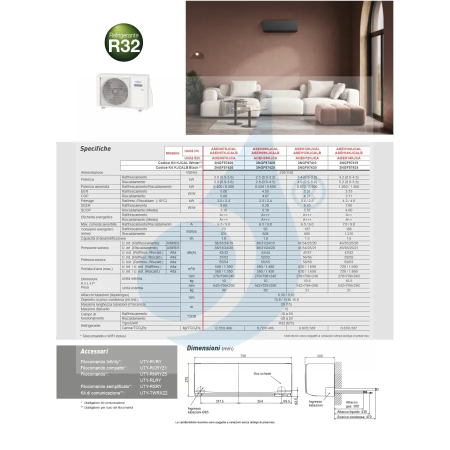 Klimaanlagen Fujitsu Mono Split Serie KJ-B WiFi 14000 Btu Heizung mit Wärmepumpe mit Niedrigenergieverbrauch Invertertechnologie