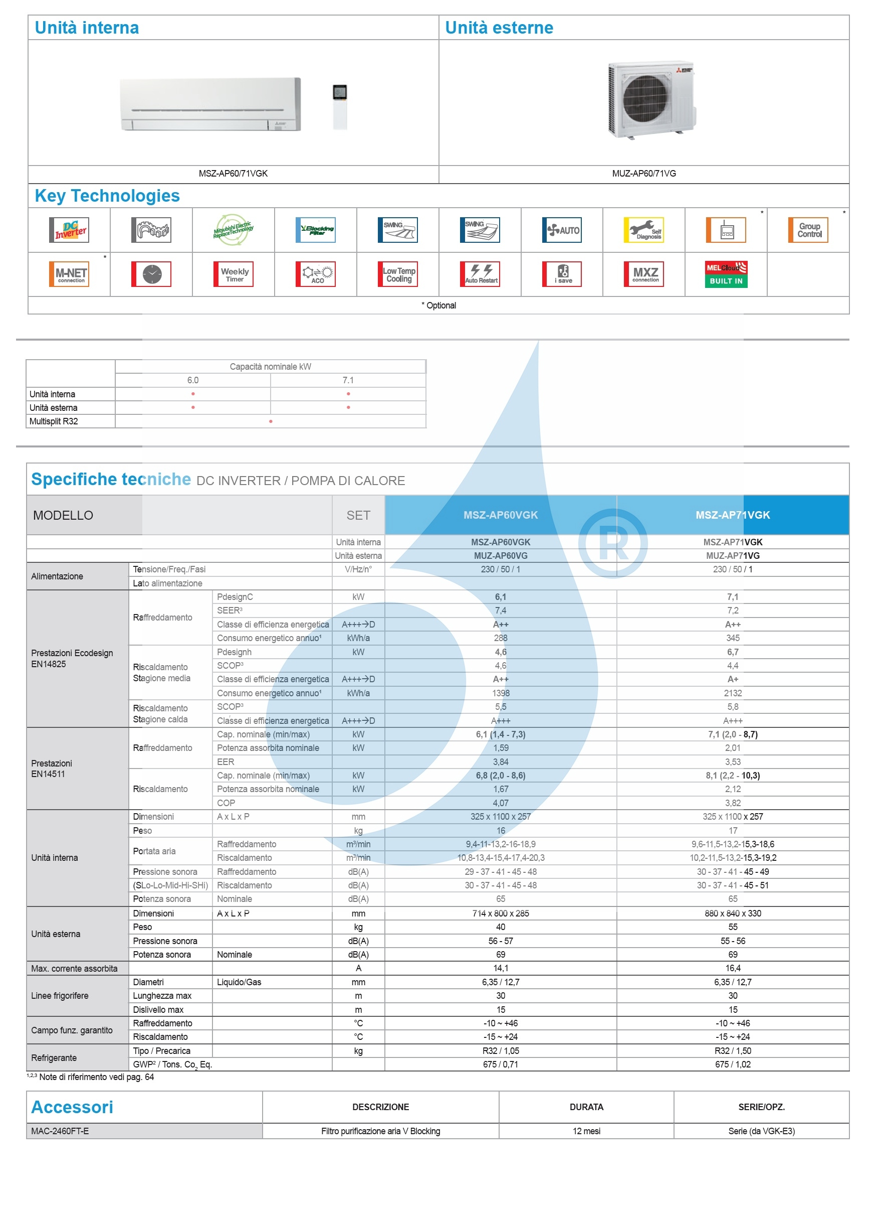 Download MSZ-AP Large Plus Series Mono Split Technisches Datenblatt (IT)