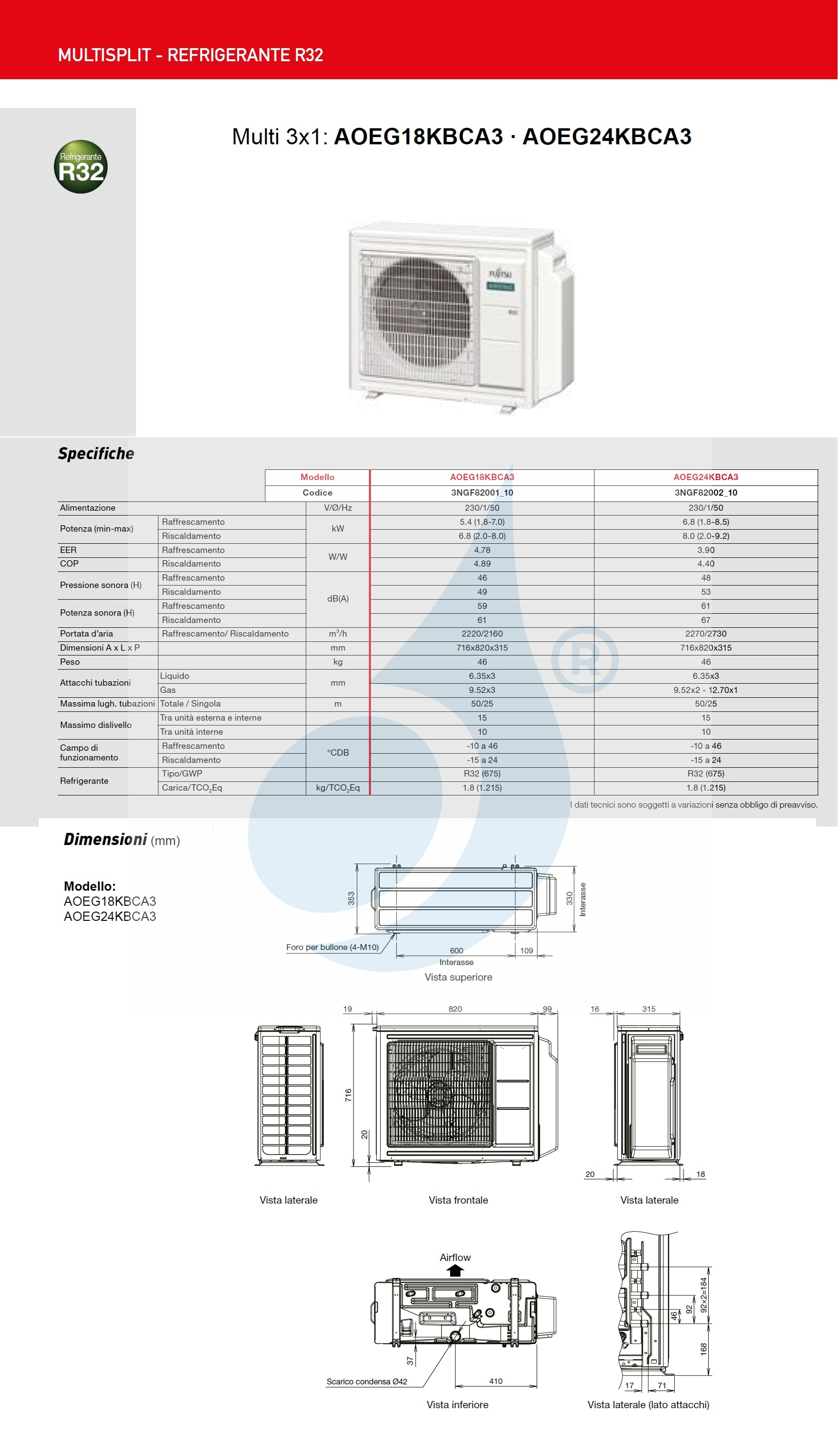 Klimaanlagen Fujitsu Außengerät Serie Multi Split 18000 Btu Multi Split Nur externe Einheit, für den korrekten Betrieb sind mindestens 2 interne Einheiten erforderlich