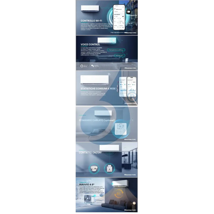 Klimageräte Hisense Penta Split Serie Hi Comfort WiFi 9000+9000+9000+12000+12000 Btu Heizung mit hocheffizienter Wärmepumpe mit geringem Energieverbrauch, Luftentfeuchter