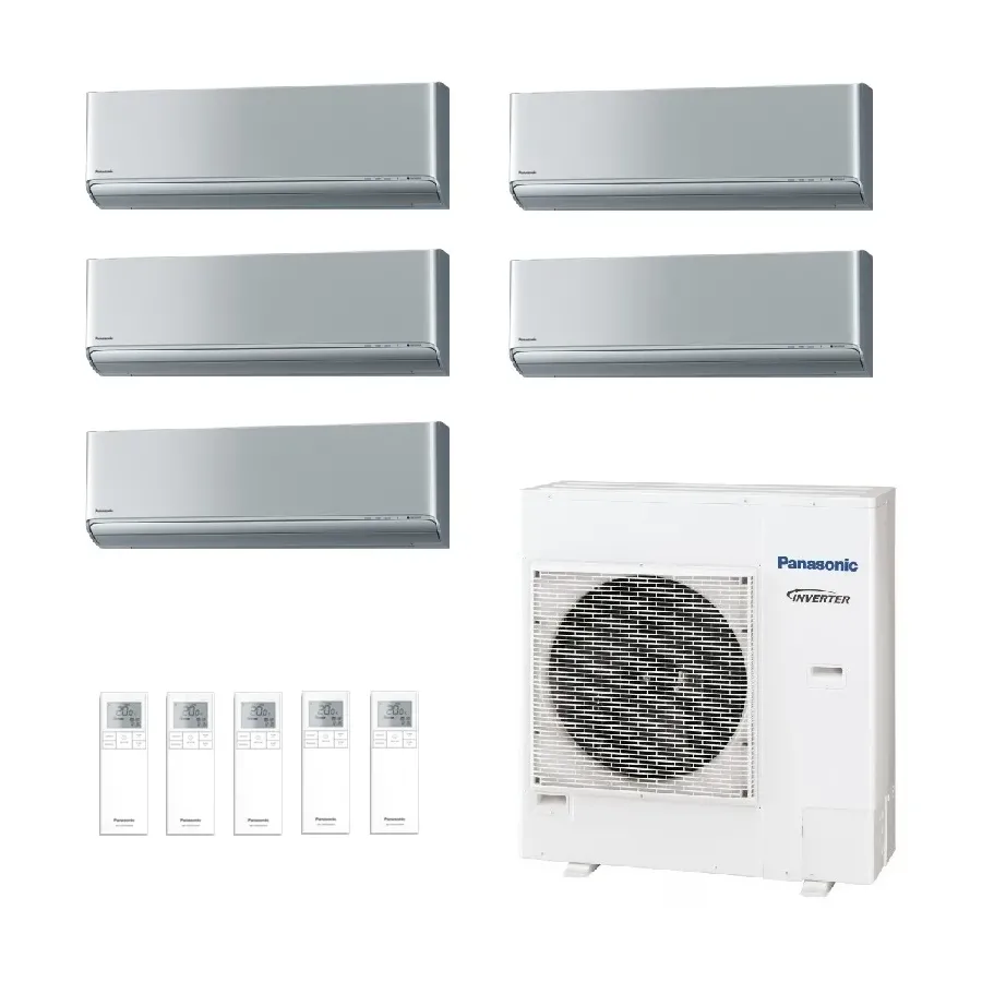 Panasonic Penta Split 2.5+2.5+2.5+2.5+3.5 kW CU-5Z90CBE 4 x CS-XZ25CKEW + CS-XZ35CKEW Klimaanlagen WiFi Silber R-32