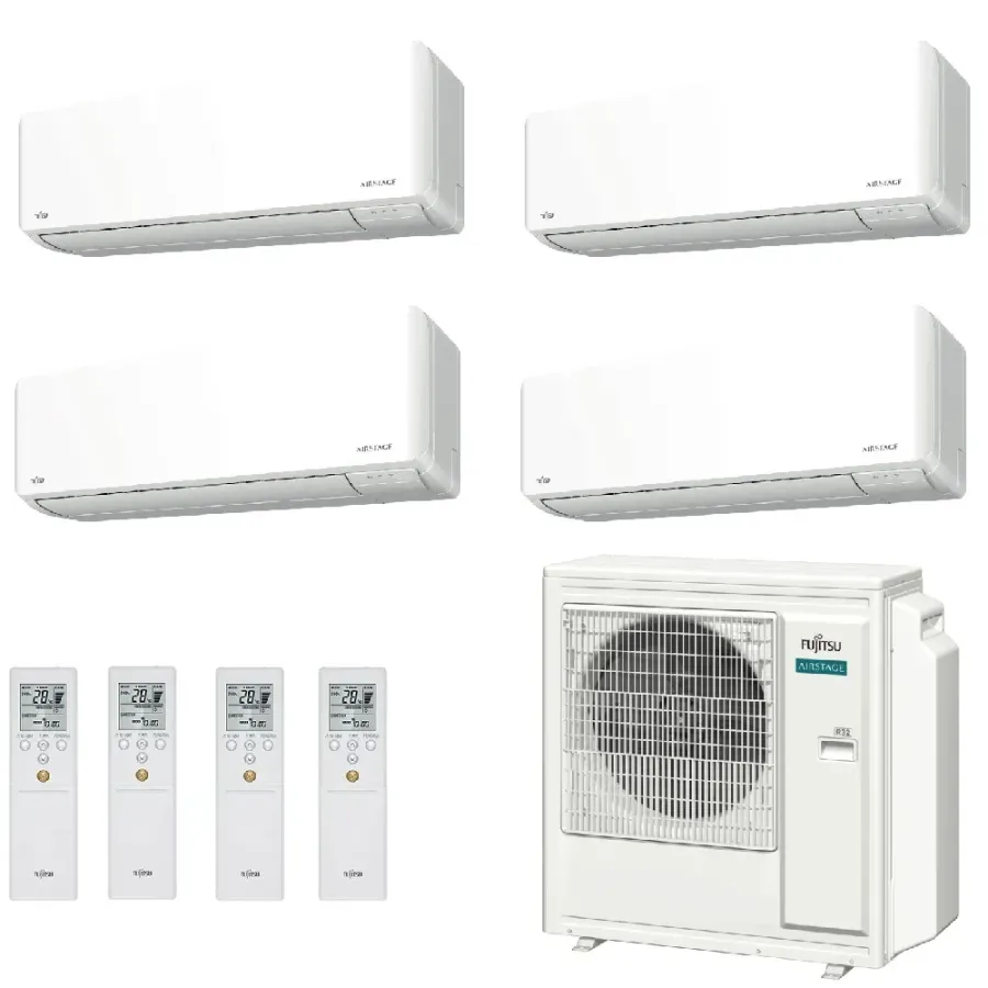 Fujitsu Quadri Split 9+9+9+12 Klimaanlage AOEG36KBTA5 ASEH09KMCG ASEH09KMCG ASEH09KMCG ASEH12KMCG KMCG Weiß R-32 A++ A+