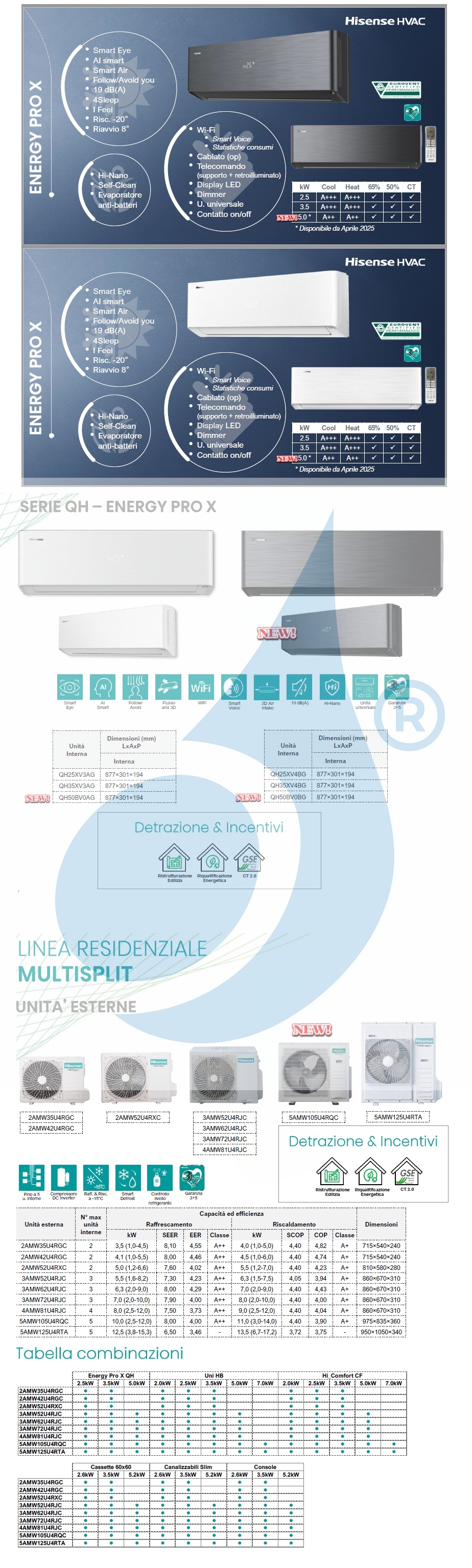 Hisense Quadri Split Energy PRO X 9+9+9+9 4AMW81U4RJC QH25XV3AG QH25XV3AG QH25XV3AG QH25XV3AG Klimaanlagen R-32 WiFi