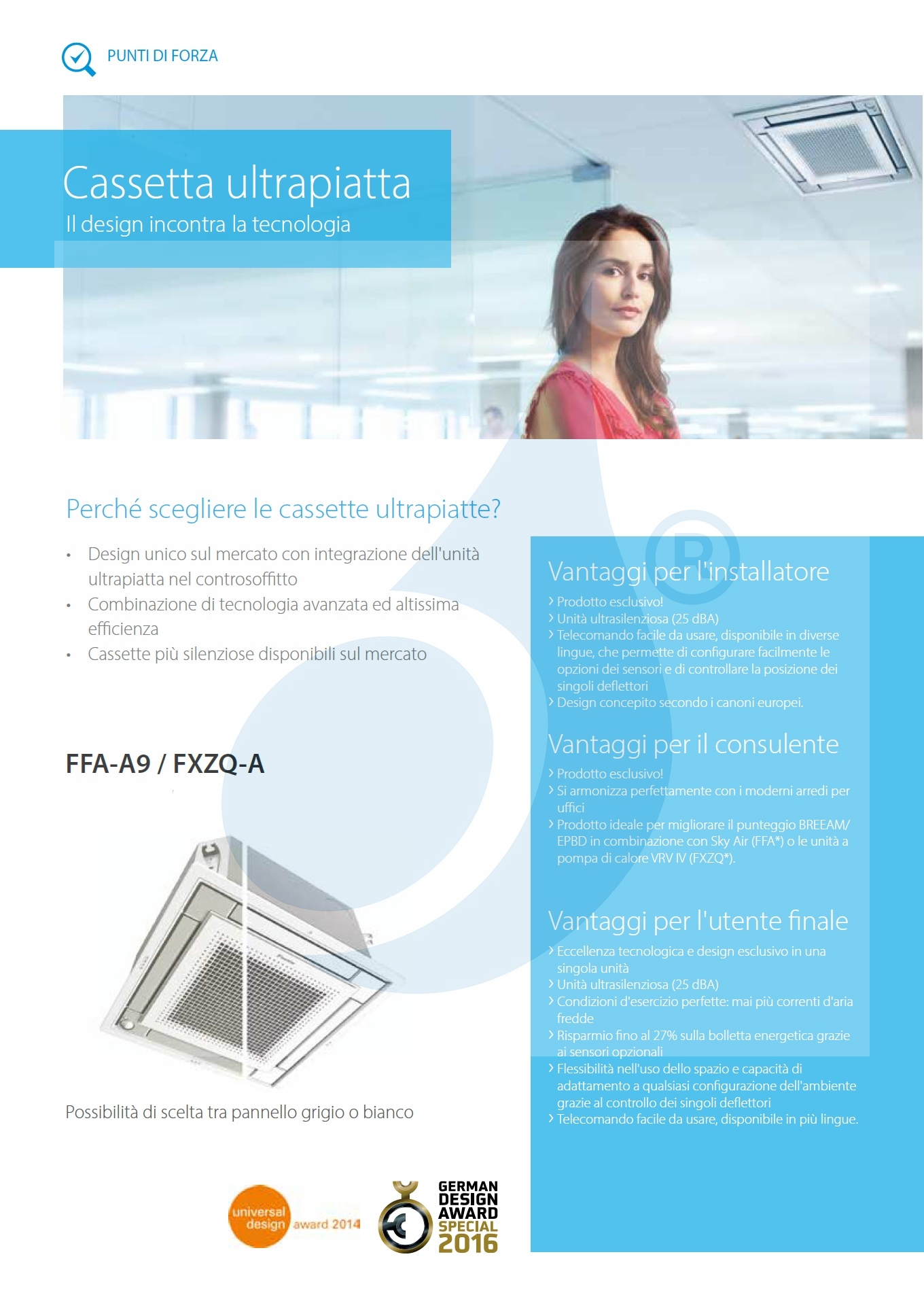 Klimaanlage Daikin Trio Split serie 4 vie FFA-A WiFi Optional 12000+12000+12000 Btu Heizung mit Schwachstrom-Absorptionswärmepumpe in hoher Energieklasse Einzigartiges Design auf dem Markt mit Integration der ultraflachen Einheit in die Zwischendecke