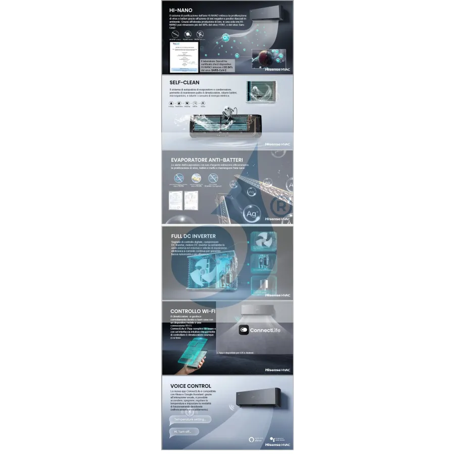 Hisense Inverter-Klimaanlagen verfügen über fortschrittliche Technologien, die Effizienz, Energieeinsparung, Ruhe und Komfort gewährleisten.