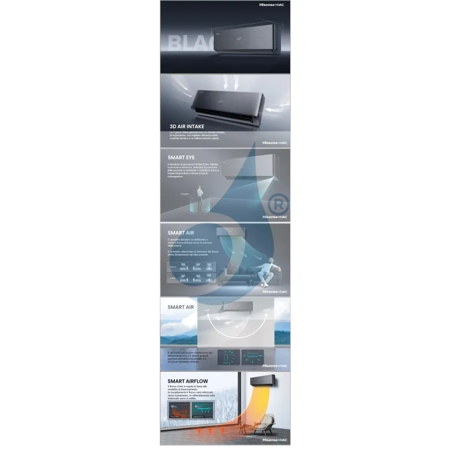 Hisense Mono Split 9000 Btu QH25XV4BG AS25XV04W Klimaanlagen Serie Energy PRO X Schwarz WiFi A+++ A+++ Inverter R-32