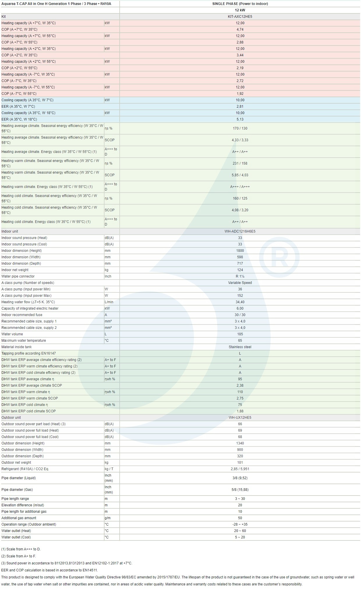 Panasonic Aquarea T-CAP Wärmepumpe KIT-AXC12HE5 12 kW 220 v R410-a Kombi-Hydromodul Generation H einzelphase