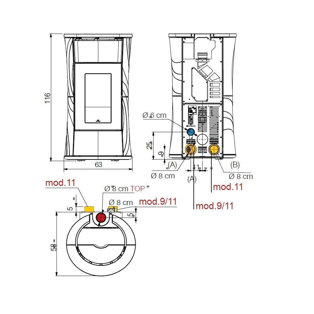 - Durchmesser des Rauchrohrs: 8 cm